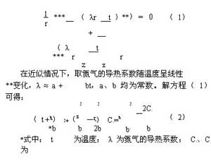 通過傅立葉導熱定律得到液氮罐內空間溫度分布的微分方程為: