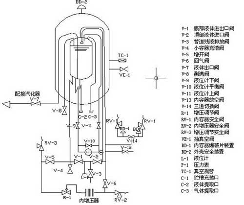 3.2.4檢查貯槽壓力是否正常,當(dāng)貯槽壓力接近或等于zui高工作壓力時,須打開內(nèi)筒放空閥V-13泄壓。